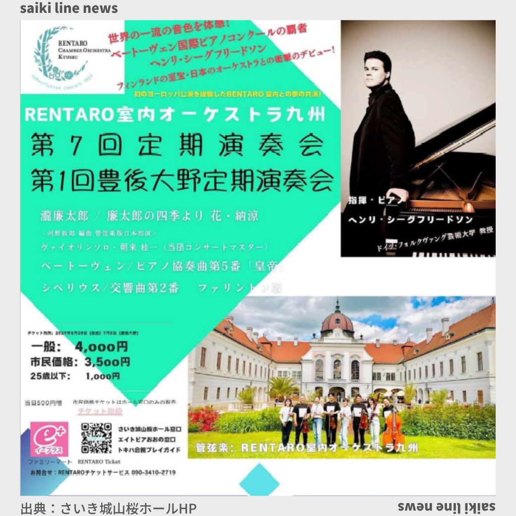 出演:ヘンリ・シーグフリードソン(指揮・ピアノ)、RENTARO室内オーケストラ九州