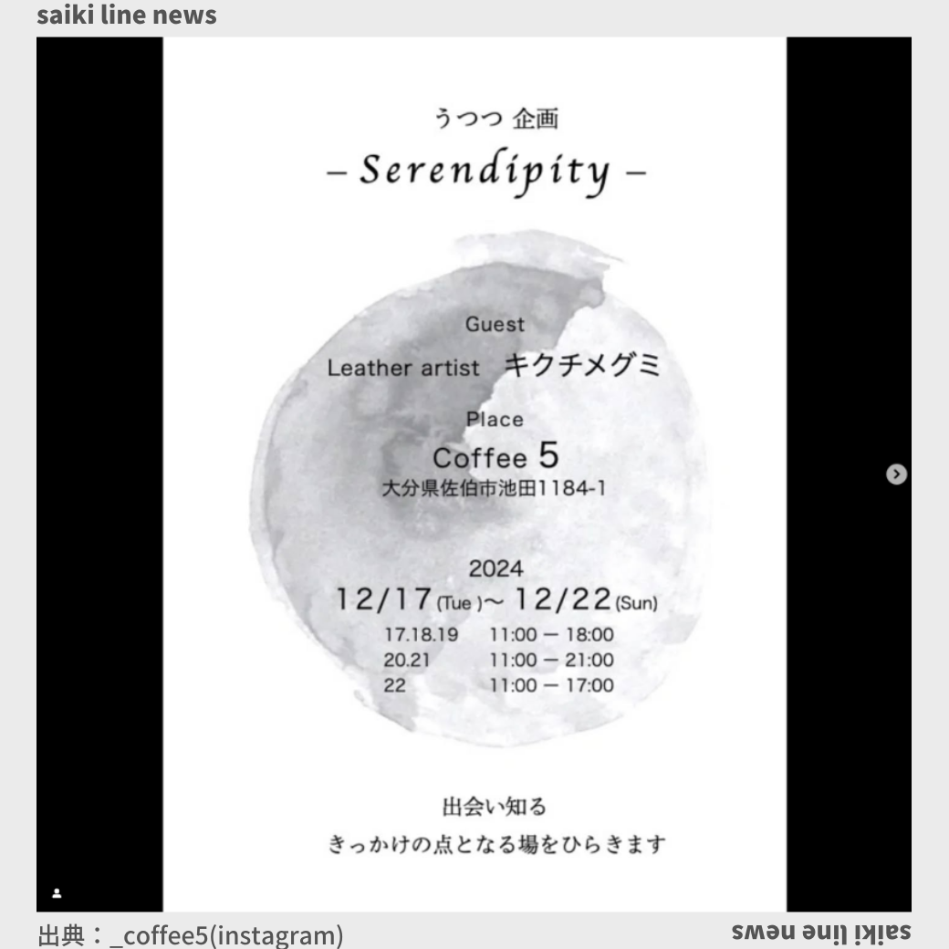 【イベントのお知らせ】 うつつ企画ー Serendipity ー @u_tutu_ 12月17日(火)ー12月22日(日) ※通常通り営業しています ※営業時間は下記にてご確認ください うつつ さんによる レザーアーティ ...