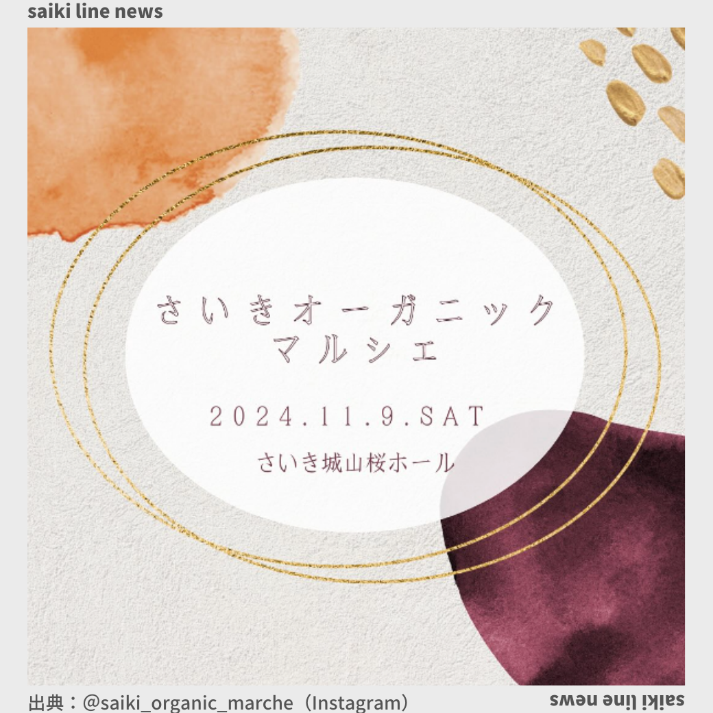 こんにちは^ ^8月も終わろうとしていますね 皆様変わりなくお過ごしでしょうか 2022年にスタートしますした さいきオーガニックマルシェも 11月の開催で10回目を迎えます これまで出展いただいた皆様 足を運んでいただ ...