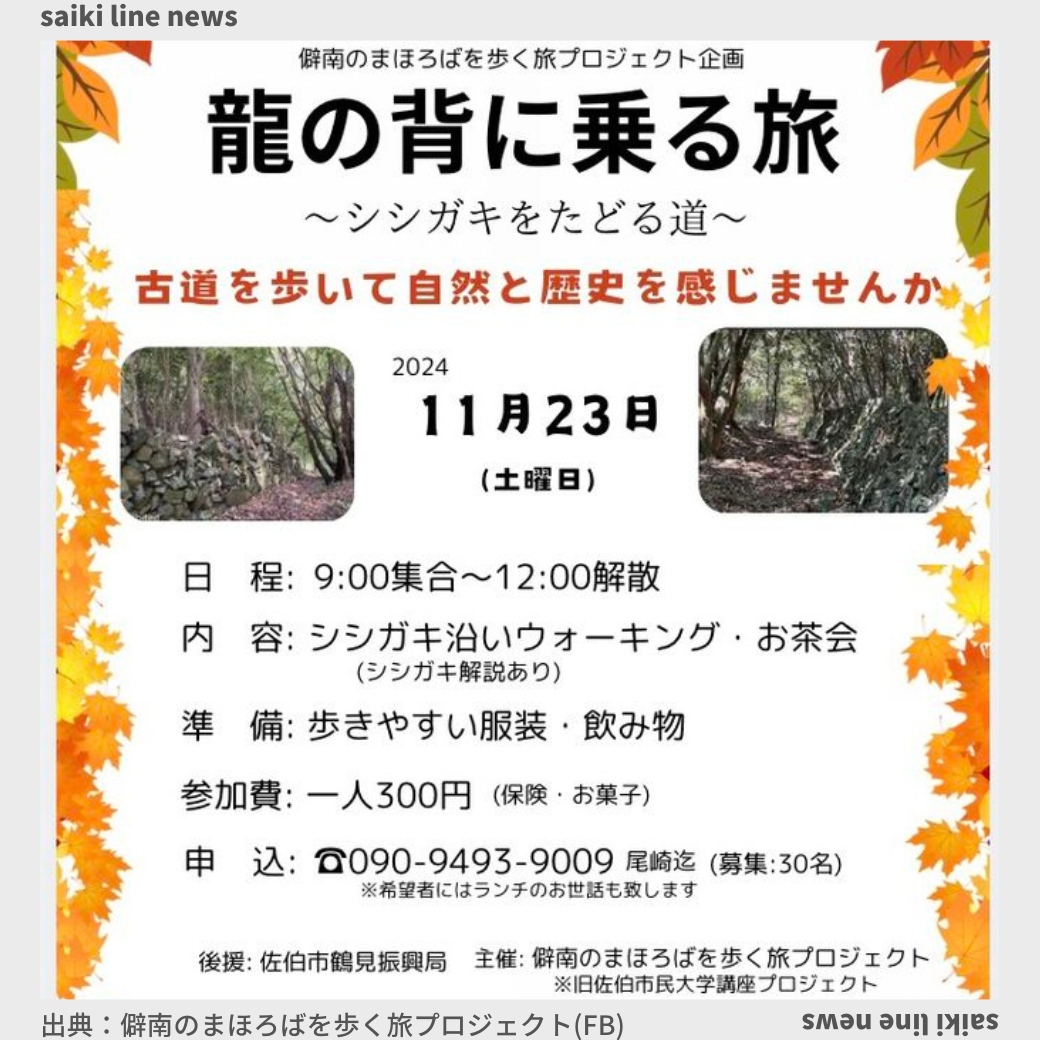 「僻南のまほろばを歩く旅プロジェクト」は、古道を歩き佐伯市の自然と歴史・文化を再発見し、その魅力を広く内外に知らしめる活動を推進しています。 今回、鶴見半島の尾根古道を歩き、そこに眠っている日本有数のシシ垣(猪や鹿から畑 ... |