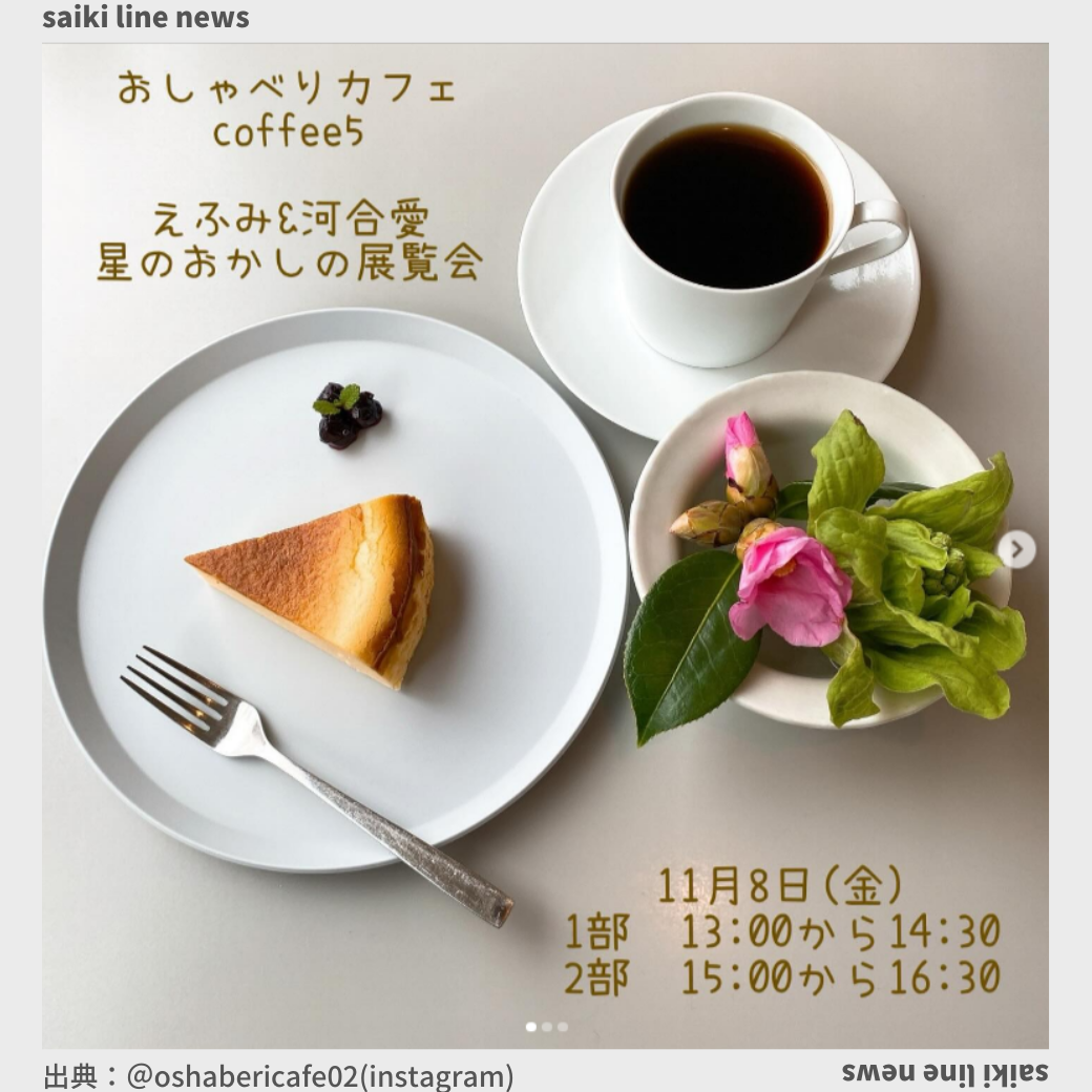 11月のおしゃべりカフェは coffee5です! @_coffee5 11月6日から9日まで おしゃべりカフェのロゴを デザインしてくれた @chalkart_chocotto えふみ&河合愛の10年 「星のおか ... |