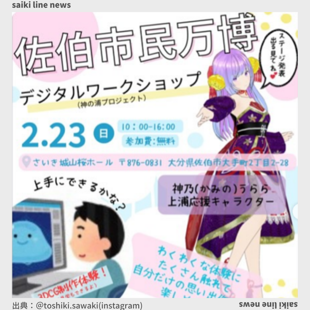 2/22-23日にさいき城山桜ホールにて開催される EXpO2025佐伯市民万博に、23日のみステージ発表で出演し、更に3DCG制作体験ができるワークショップも開催します! 特にワークショップは、進路を考えたり、自分に向 ...