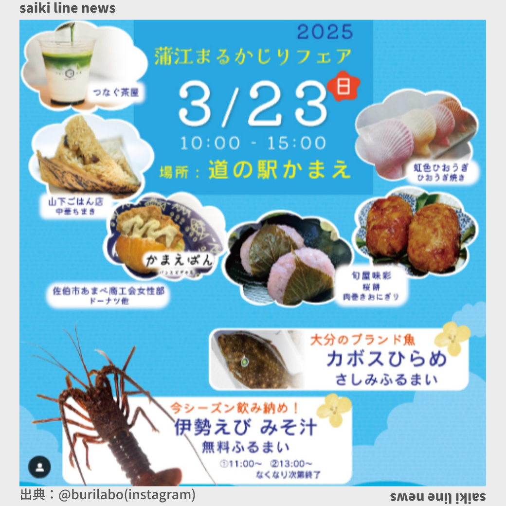 2025年3月23日(日)開催🙌 道の駅かまえ駐車場にて、「春の蒲江祭り 蒲江まるかじりフェア」が開催されます! 蒲江の特産品を使った美味しい料理や振る舞いに加え、 地元の出店者による春らしい魅力的なラインナップも楽しみ ... |