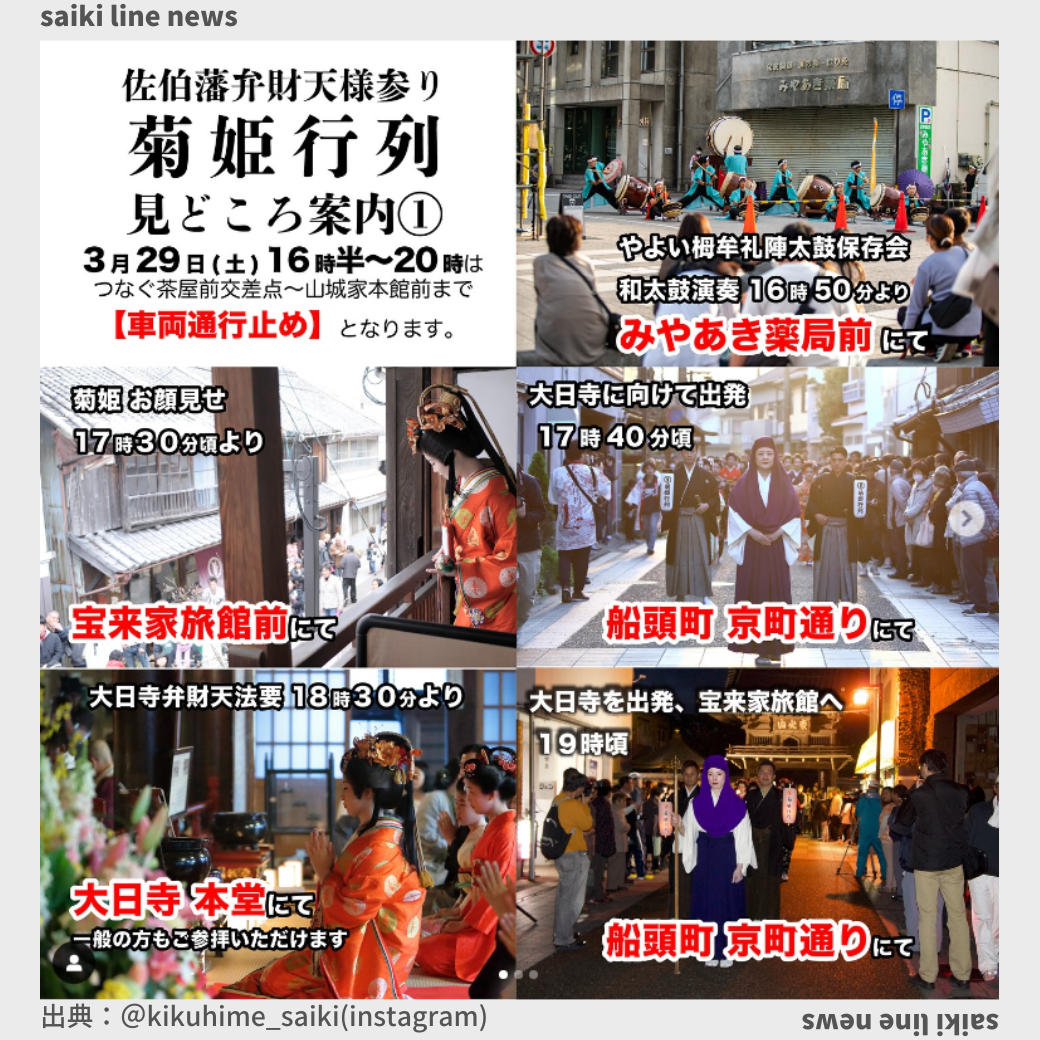 3月29日(土)・30日(日)に開催される「さいき桜まつり」にて、佐伯商工会議所青年部では佐伯藩大名行列・明神太鼓を披露します!✨ 今年はなんと大名行列の衣装を一新!より華やかになった姿をぜひご覧ください。 ■29日(土 ... |