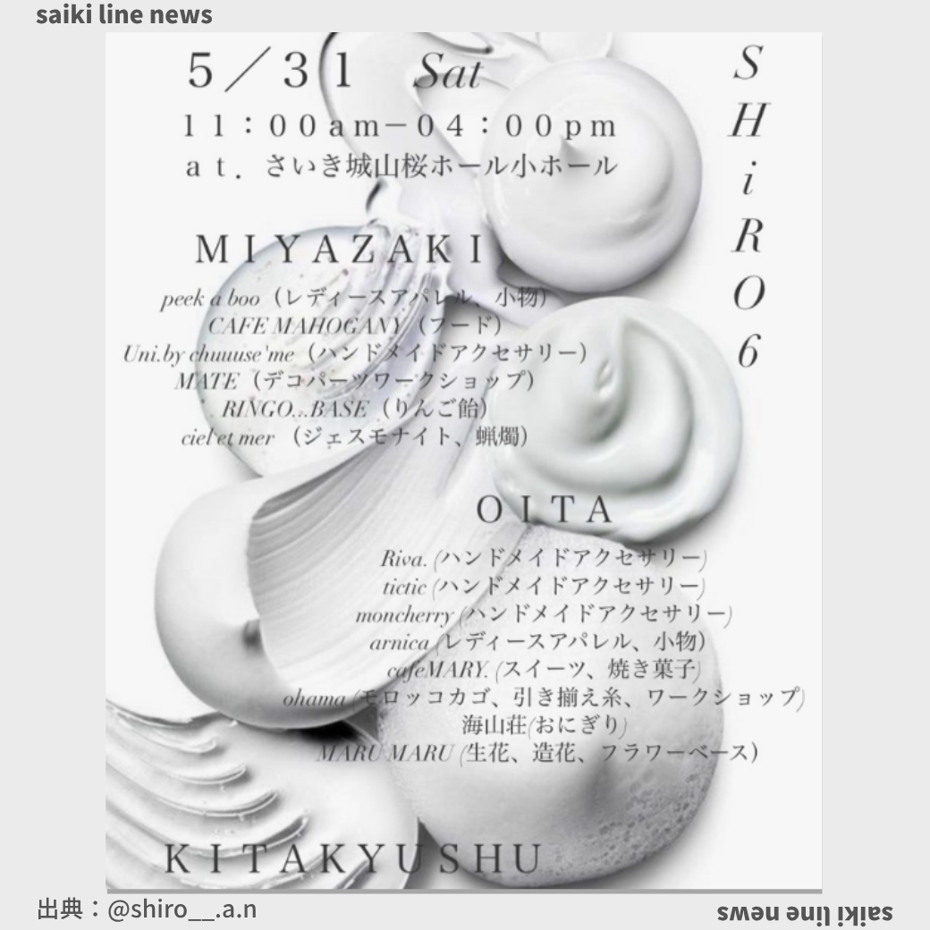 第6回 SHiRO in 佐伯 2025.05.31 Sat 11:00am-04:00pm 📍 さいき城山桜ホール小ホール 4ヶ月ぶりのSHiRO開催! 佐伯では約1年ぶりの開催となります🕊️ 今回は宮崎、大分に加えて ... |