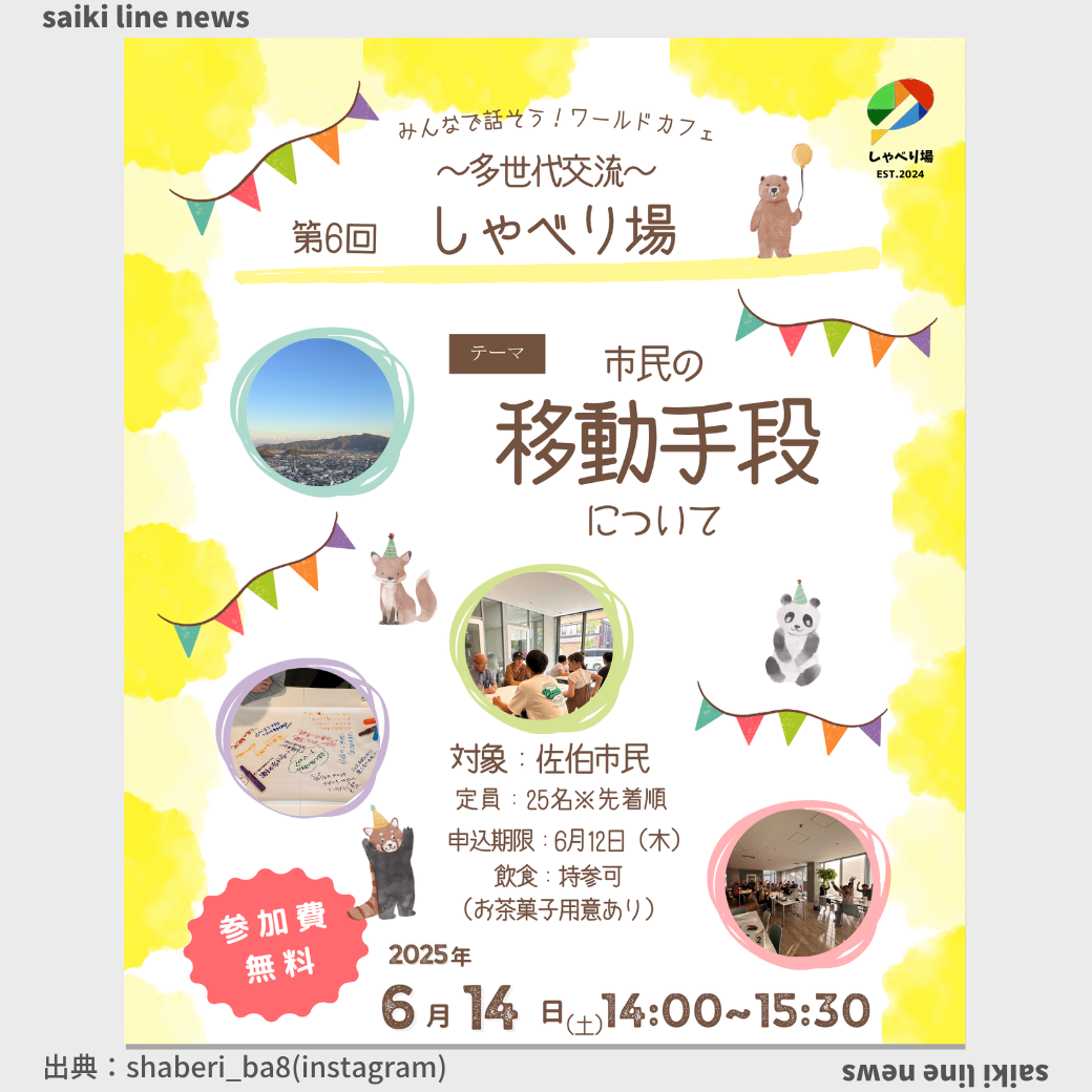 こんにちは🍀 〜多世代交流〜しゃべり場です🪇 前回の第5回目にご参加いただいた皆さん、 ありがとうございました🙇 イベント後のご報告の形をリニューアルしますので、募集と前後しますが、少々お待ちください🤲 本日より、第6回 ... |