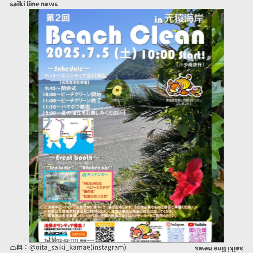 蒲江地域創生支援協議会がお贈りする今年のイベント第1弾! 「第2回Beach Clean in元猿海岸」開催! 今年もやりますビーチクリーンイベント! 今年はビーチクリーンと「ハマボウ」の植樹を行います。 当日はウミガメ ... |