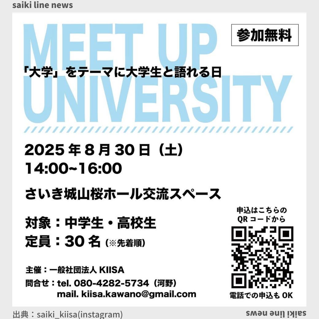 【開催告知】 「大学」をテーマに大学生と語れる日 MEET UP UNIVERSITY みなさんこんにちは。KIISAの河野です。 来たる8月30日(土)、佐伯やKIISAと縁のある所属や専攻の異なる3名の大学生に協力を ...