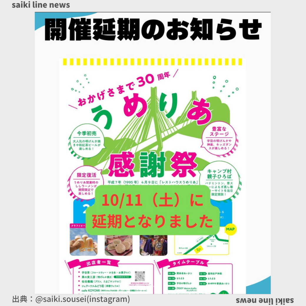 道の駅宇目開業30周年記念「うめりあ感謝祭」が開催されます。 期間限定で、開業当初のメニュー🐗「ししラーメン」がレストランで提供されます。 当日は、唄げんか焼き(数量限定)、宇目の和紅茶を使用したビール🍺、かき氷🍧、米粉 ...