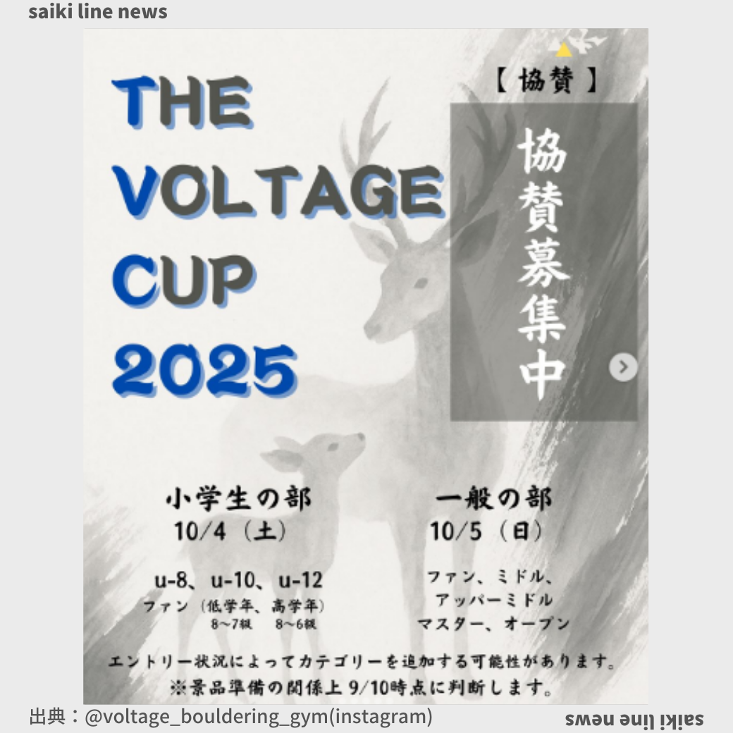 THE VOLTAGE CUP 2025 開催! 今年で3周年を迎えるボルテージコンペ、詳細が決定しました🔥 🦌 注目ポイント ・小学生の部には、翌週福岡で開催される「全国ボルダー小学生競技大会」のセッター 永田乃由季さ ...