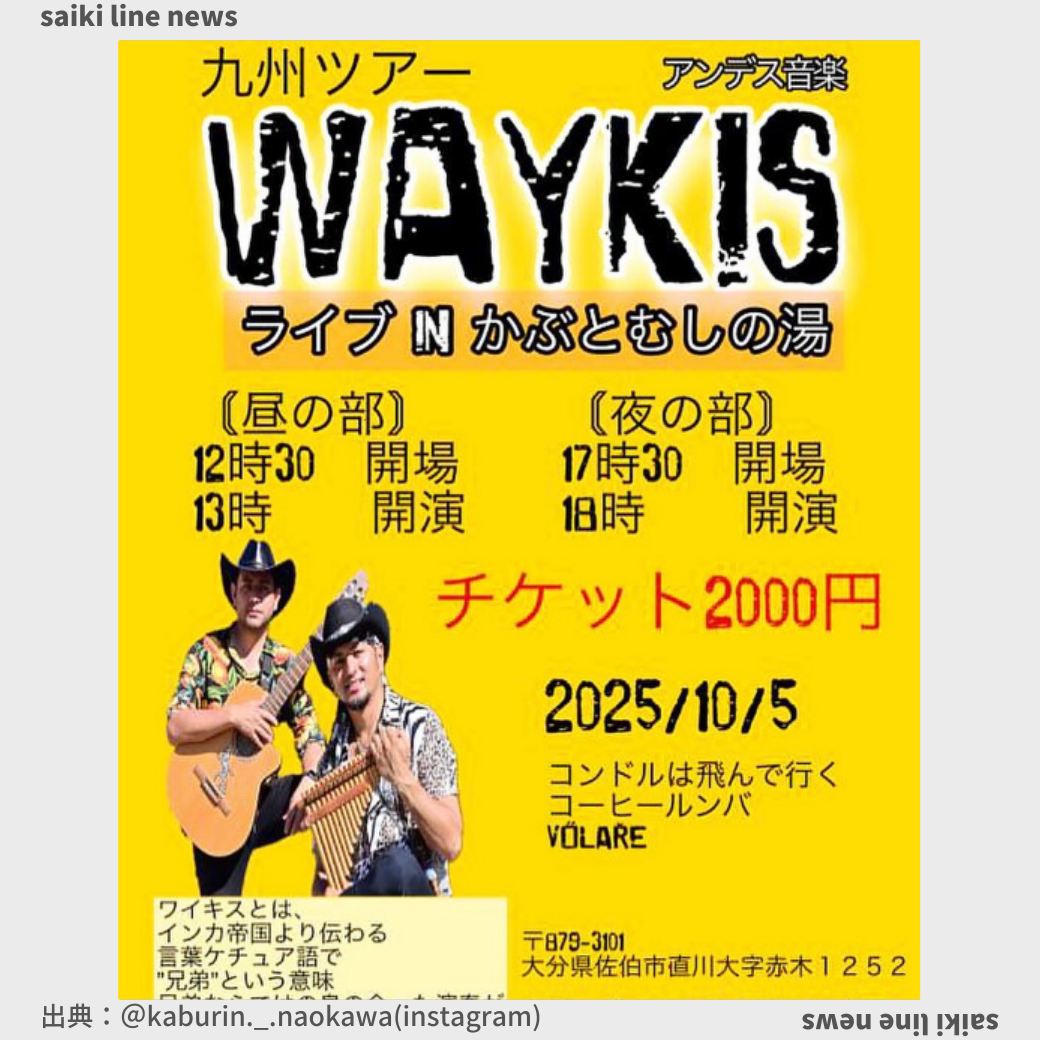 みんな〜!10月5日は超スペシャルな日なんだ📅 なんと…WAYKISさんがライブにきてくれるよ〜🎶 しかも昼と夜、2回公演! チケットは2000円で、どっちも盛り上がることまちがいなし🔥 お湯でぽかぽかになって、音楽で心 ... |