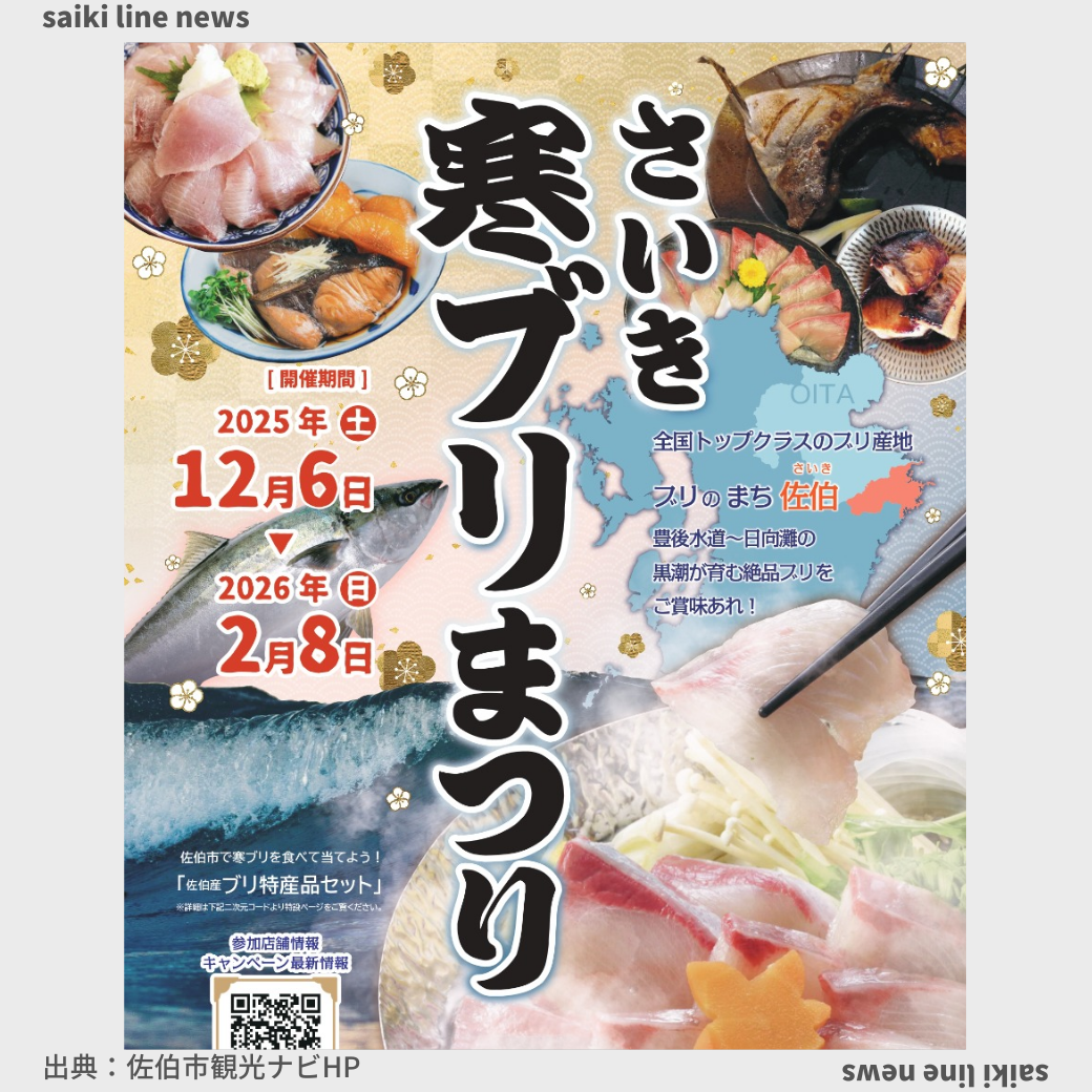 佐伯市ではこの冬、旬の食材「寒ブリ」をテーマに、地元ならではの魅力を発信するキャンペーン「さいき寒ブリまつり」を初開催いたします。市内の飲食店や宿泊施設と連携し、佐伯産寒ブリを使った特別メニューを期間限定でご提供。佐伯の冬の味覚をきっかけに、地域の魅力を再発見していただける催しです。ぜひこの機会に佐伯へお越しください。