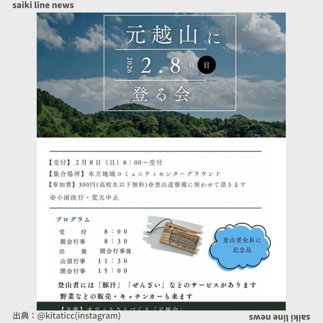 第36回目の元越山に登る会が令和8年2月8日に開催されます