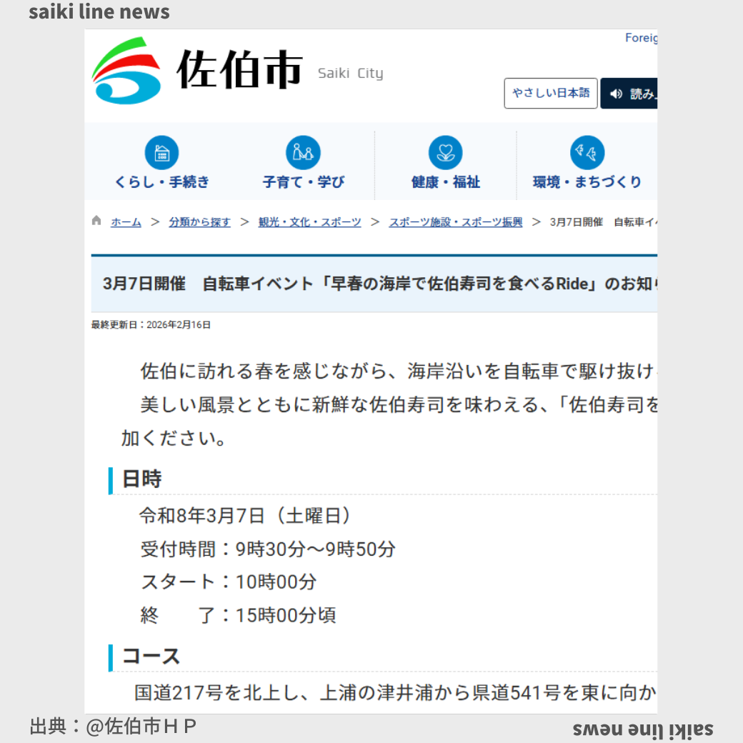 美しい風景とともに新鮮な佐伯寿司を味わえる、「佐伯寿司を食べるRIDE」を開催します!是非ご参加ください。日時